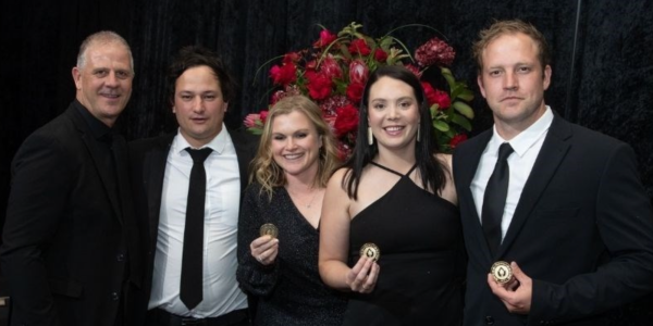 From left: Christo Pienaar, head of Veritas, with Diemersdal winemakers Reon Richter, Mari Branders, Janeke Beck and Juandré Bruwer.